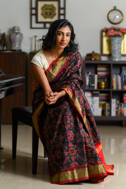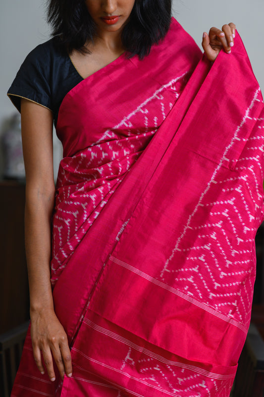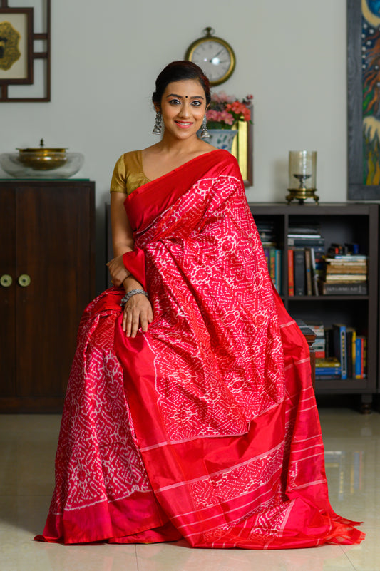 Cherry Fantasy Handwoven Single Ikkat Silk