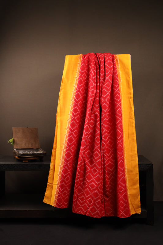 Red Diamonds & Mehendi Green Floral Handwoven Single Ikkat Cotton