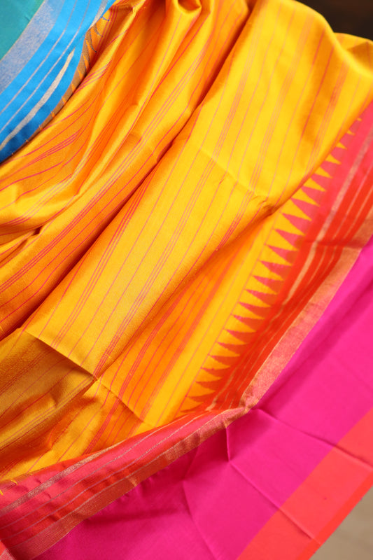 Marigold Turquoise & Fuchsia Kanjivaram Silk