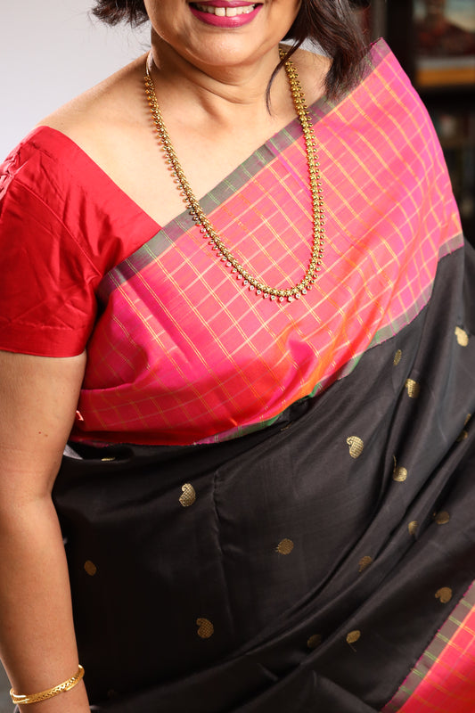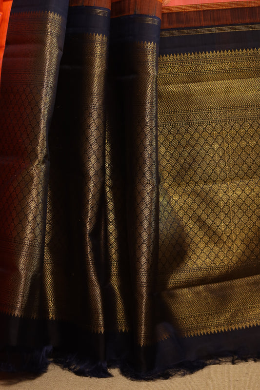 Peach & Black Irulathai Pakshi Kanjivaram Silk